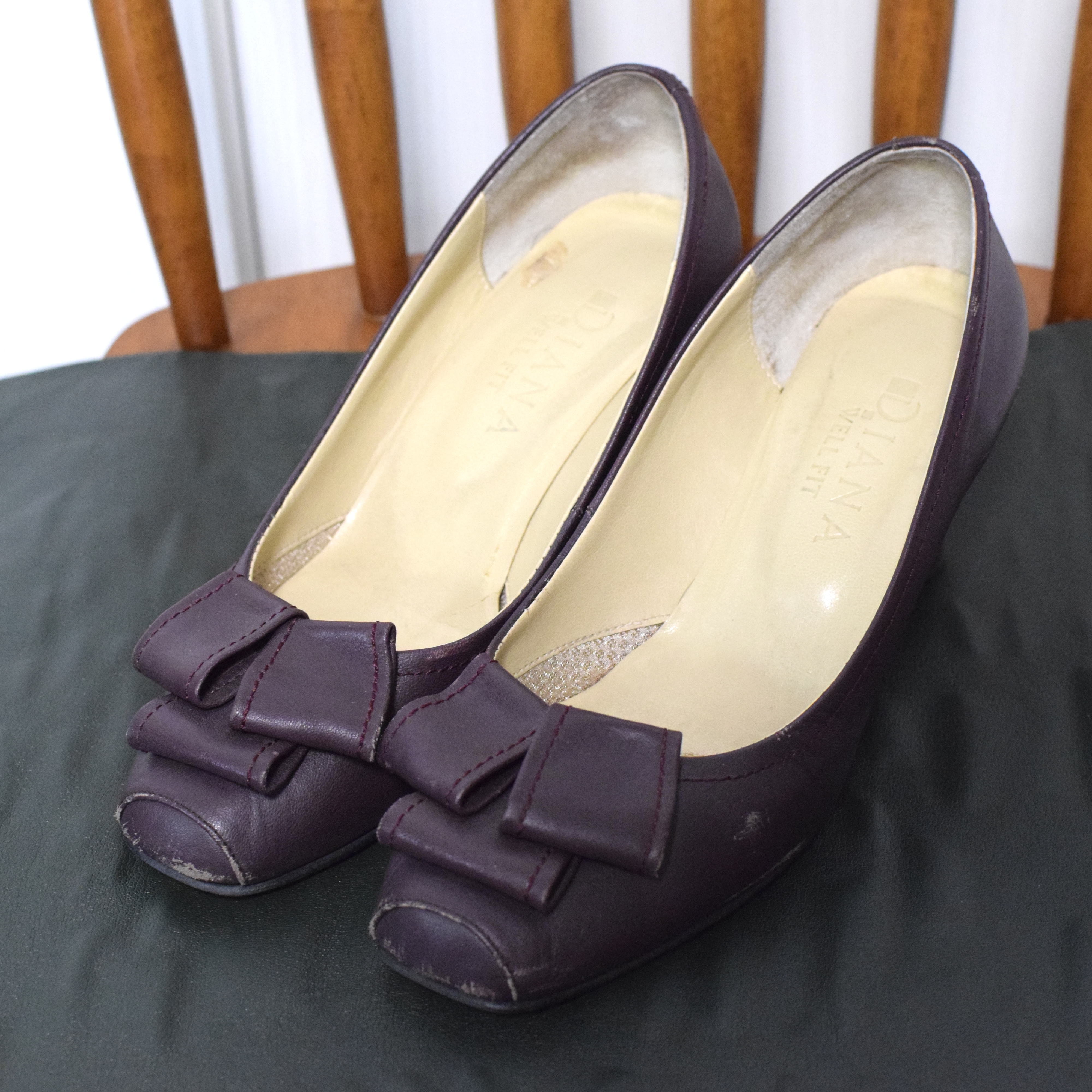 今回磨くヒールは、ダイアナというブランドのもの。妻はこのダイアナの靴を数足持っており、好んで履いてます。私はあまり詳しくないですがメイドインジャパンと書いてあり、日本のブランドみたいですね。紳士靴で言うリーガル的なポジションなのかもしれません(違ってたらすみません)。